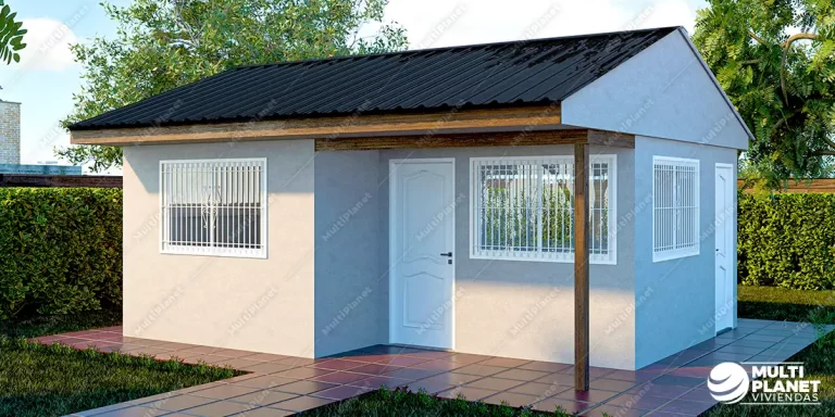 Vivienda de 74mts2 desarrollada en una planta. Consta de dos dormitorios, un baño, cocina comedor y living.